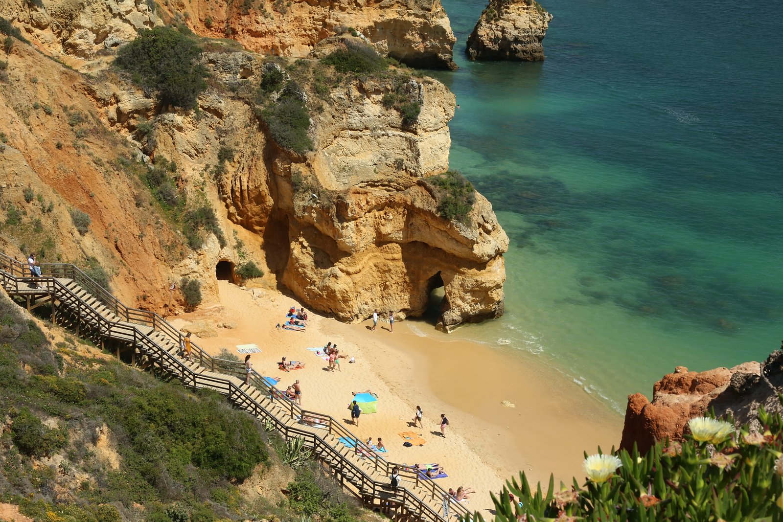 Tra i punti più fotografati della regione ci sono proprio le scale in legno che conducono alla baia sabbiosa di Praia do Camilo. Le scogliere di Ponta da Piedade regalano una vista panoramica incredibile e ospitano un faro.
