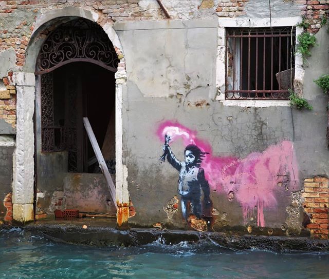 Dopo anni, nel 2019, l’artista torna in gran segreto in Italia, regalandoci un altro dei suoi capolavori. Stavolta l’opera si trova a Venezia ed è stata realizzata alla prima settimana post opening della Biennale di Venezia. Si tratta di un bambino sopravvissuto a uno sbarco travolto dal vento e con addosso un giubbotto di salvataggio. L’opera lo raffigura con in mano un razzo segnaletico, che illumina la notte, a voler simboleggiare una speranza di salvezza. O forse cerca di indicare qualcosa catturando la nostra attenzione immerso coi piedi nell’acqua. Un bambino che indica la strada agli adulti.