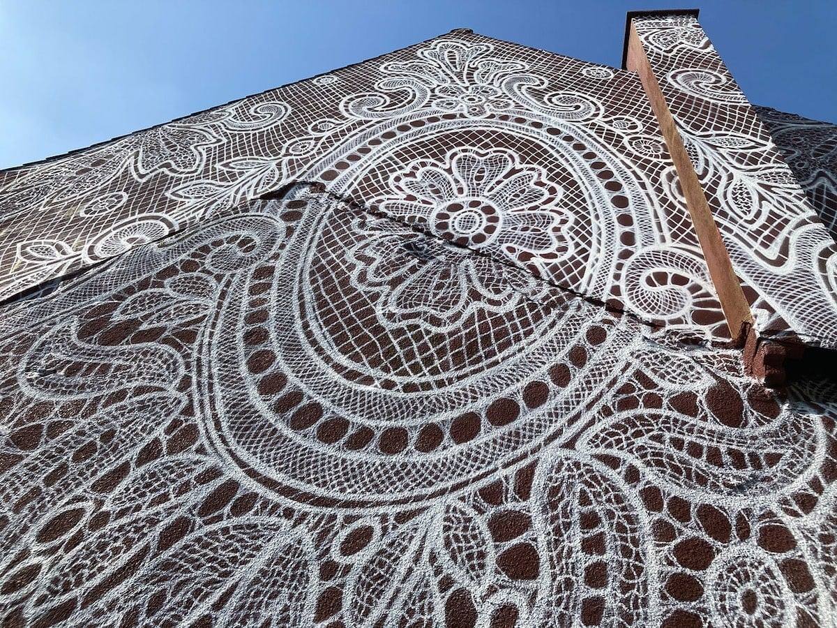 La magnifica opera di street art firmata NeSpoon è un’autentica meraviglia, che si può ammirare nel borgo di Calais. Il paesino che si trova sullo Stretto di Dover attualmente ha un motivo in più che attira i visitatori al suo interno. I merletti e le decorazioni artistiche della grande pittrice si possono ammirare sui muri della cittadina, che ha un profondo legame con l‘industria tessile. La recente opera dell’artista punta dunque a rendere omaggio a quella che per decenni ha rappresentato la principale fonte di lavoro per gli abitanti del borgo. Si tratta di un’interessante iniziativa, che celebra la bellezza ed esalta la struttura armonica della località francese. I due secoli di storia dell’industria tessile locale vedono rifiorire il sentimento che lega la cittadina alla moda e alla produzione tessile. Il murale in questione si può ammirare sulla facciata della Cité de la Dentelle et de la Mode de Calais. Il prestigioso museo dedicato alla moda e all’arte tessile assume quindi un nuovo look, che lo rende ricco di fascino anche all’esterno.