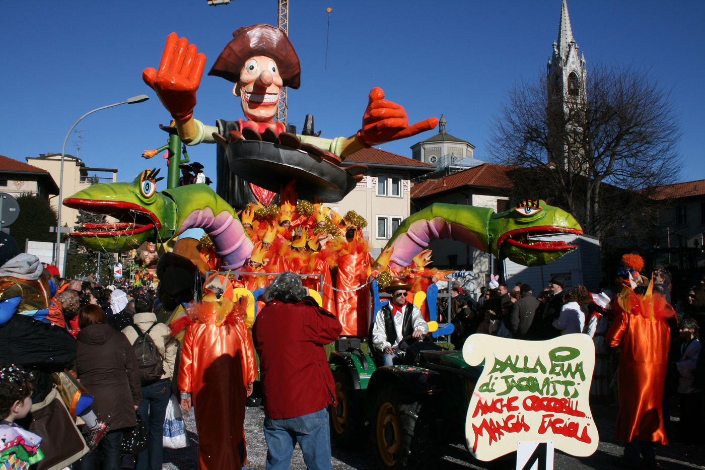 Il secondo carro nell’ordine di parata, “Il can-can lo facciamo noi”, realizzato dal gruppo Lisandrin, con la satira politica e lo sberleffo contro i politici. Amici di Fecchio, sarà il terzo gruppo ad esibirsi, con un il carro più monumentale della rassegna, alto ben 13 metri.