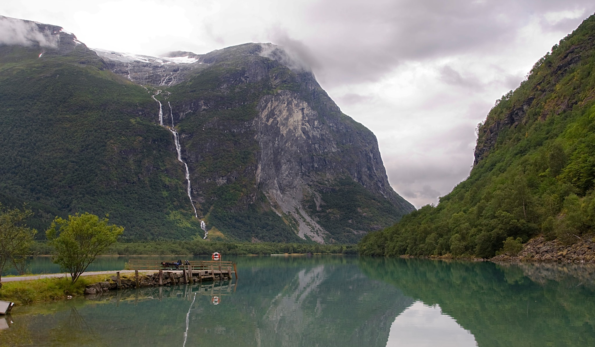 Dopo il salto le acque confluiscono nel fiume Driva nei pressi dell’abitato di Hoelsand.