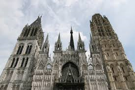 Una scultura di Riccardo Cuor di Leone del 1199 sulla torre di sinistra è un promemoria di quanto vicino le storie di Inghilterra e Francia erano nel Medioevo . La facciata può sembrare familiare , anche se non avete visto prima ; Claude Monet la ha utilizzata per una serie di 28 quadri per mostrare i diversi effetti di luce in momenti diversi del giorno .