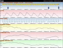 Massime giornalieri scendono da 22 ° C a 19 ° C in tutto il mese, quasi mai superiori a 27 ° C o che rientrano sotto i 14 ° C. Basse temperature giornaliere seguono uno schema simile e caduta da 13 ° C a 10 ° C, passando sotto i 6 ° C o aumento superiore a 16 ° C solo un giorno su dieci.
