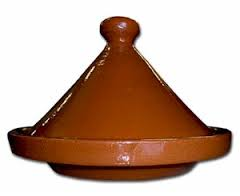 Un tagine è come una casseruola usata in cucina nordafricana, più comunemente in Marocco. Si compone di due parti – una piastra come fondo e un coperchio a forma conica. Il fondo raddoppia come un piatto di portata, che è utile per i nomadi.