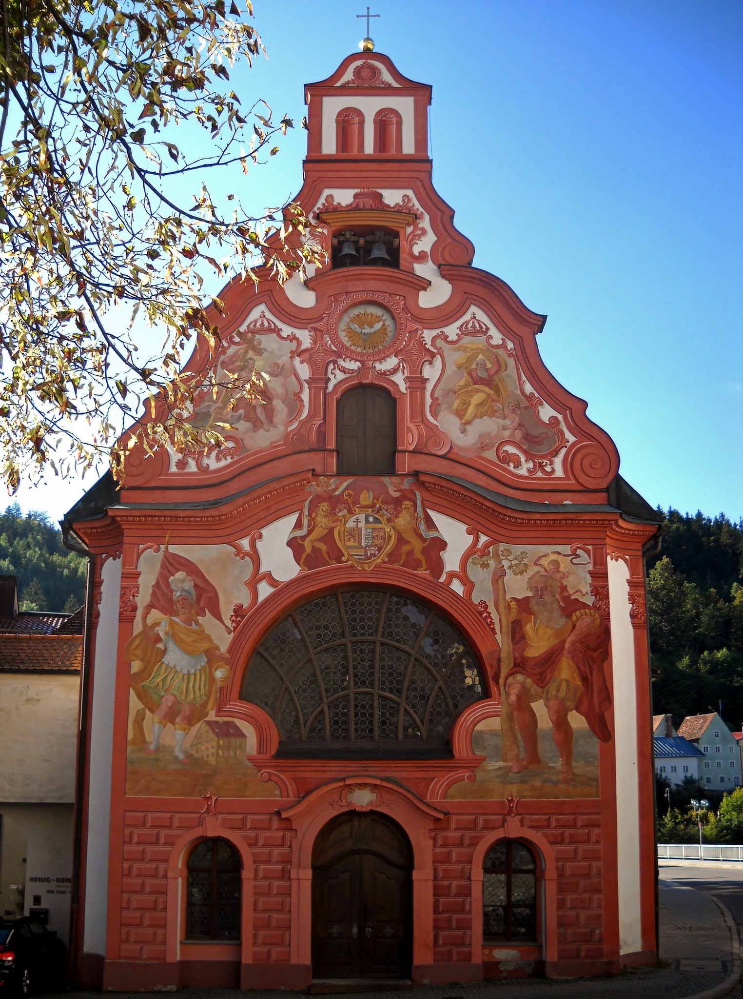 Lambita dal fiume Lech e sormontata dalle imponenti Alpi Bavaresi, Fussen riserva un dedalo di stradine tortuose, sulle quali sono affacciate vecchie case coloratissime. Una visita merita senz’altro la chiesa più originale del paese, quella di Spitalkirche (dello Spirito Santo) dalla particolarissima facciata in stile rococò, che per secoli du il punto di riferimento di culto per gli zatterieri, che trasportavano le merci sul fiume.