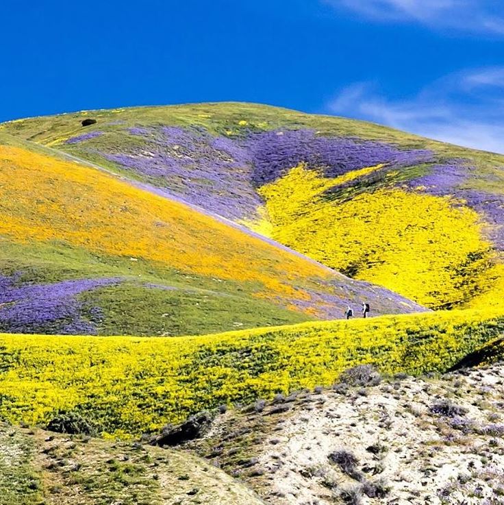 Tra la primavera e il periodo autunnale la vallata di Carrizo Plain si tinge completamente di giallo. Una zona compresa tra valli, montagne e zona collinare che ogni anno tra aprile e maggio ospita un’incredibile evento naturale noto anche come ”Superbloom”.