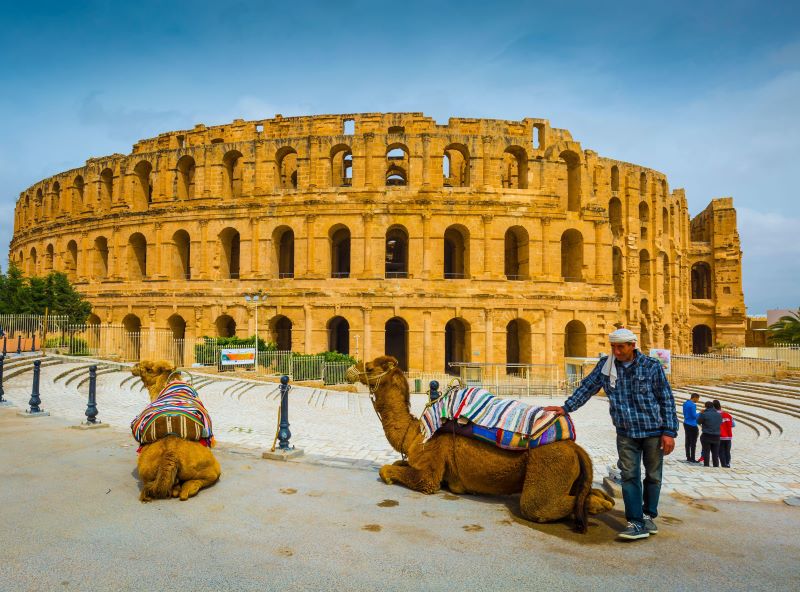 El Jem, in Tunisia, è un magnifico stadio romano del III secolo, classificato dall’UNESCO. Dall’esterno, El Jem assomiglia molto alla sua controparte romana, più antica e più grande. In effetti, con le sue abbondanti caratteristiche originali e le sue mura di pietra ellittiche, che in alcuni punti sono intatte fino a 35 metri, molti sostengono che El Jem sia in condizioni migliori del Colosseo.
