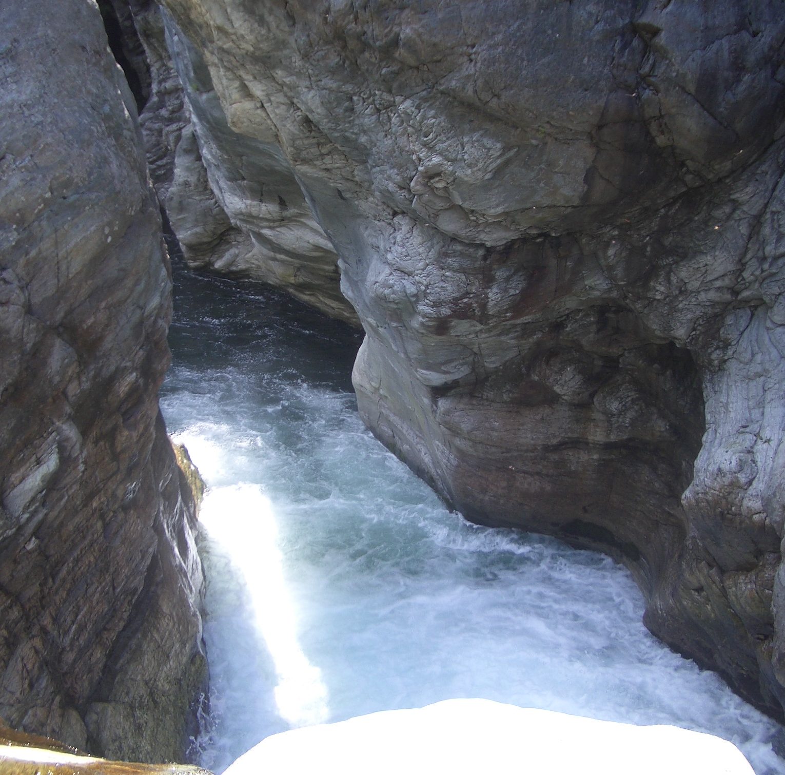 Due specchi d’acqua collegati da un rivo che scorre in mezzo a pareti nude e levigate in cui si legge la capacità di portata del fiume in tempi di pioggia e piena: sono le Guje di Garavot.