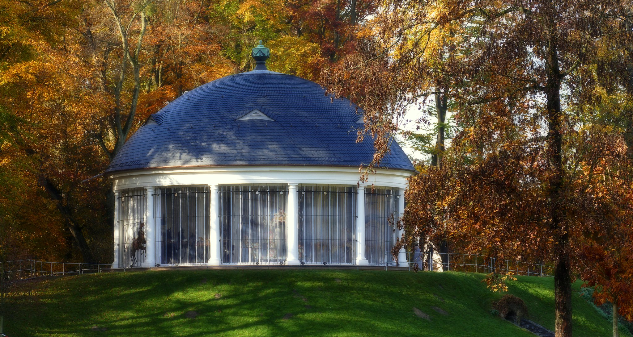 Si tratta di una una giostra girevole al culmine di una collina artificiale.