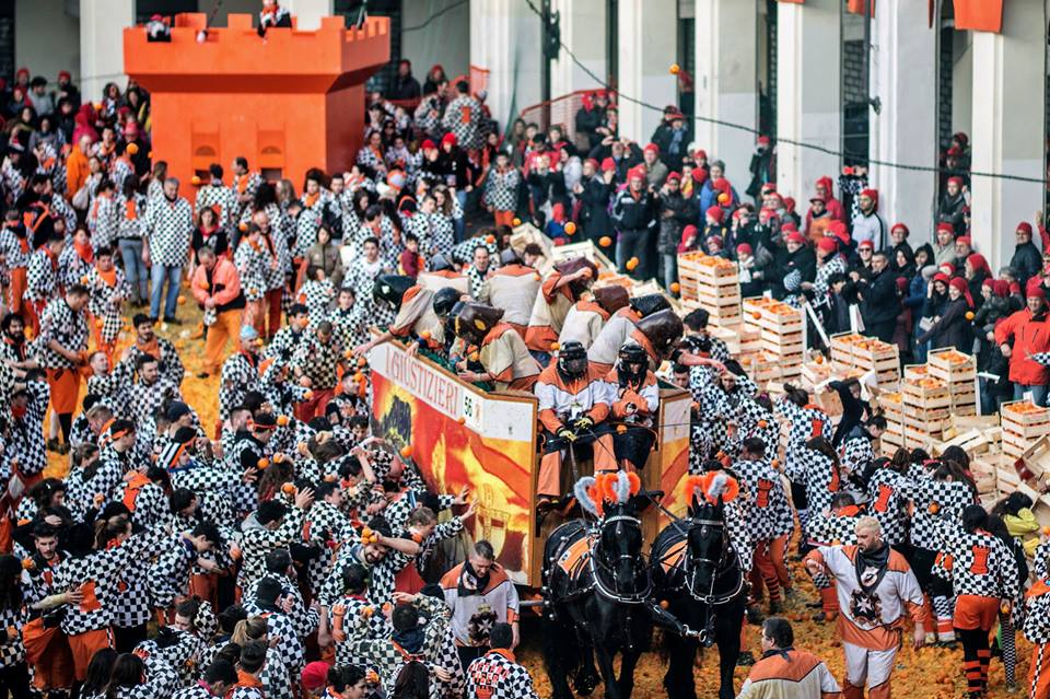 Se siete appassionati della battaglia delle arance, potete andare a Ivrea, vicino Torino, per la Battaglia delle Arance che si celebra ogni anno. Centinaia di tonnellate di arance vengono gettate ogni anno, in un carnevale che termina con la polenta. Potete anche approfittarne per visitare Torino, a pochi passi da Ivrea, per la festa del cioccolato e le sue degustazioni.
