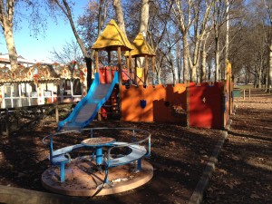 La seconda area si trova di fronte a Palazzo Te, e comprende scivoli, strutture di gioco con ponti e un trenino in legno per i bimbi più piccoli.