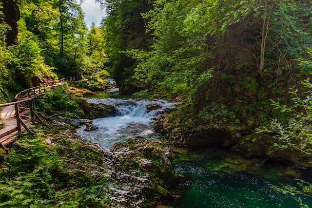 La Gola di Vintgar è una passerella di legno di 1,6 km che si snoda a zig zag sul fiume Radovna. In alcuni punti raggiunge i 100 metri e si aggrappa alle pareti rocciose, lasciando a volte spazio per una sola fila.