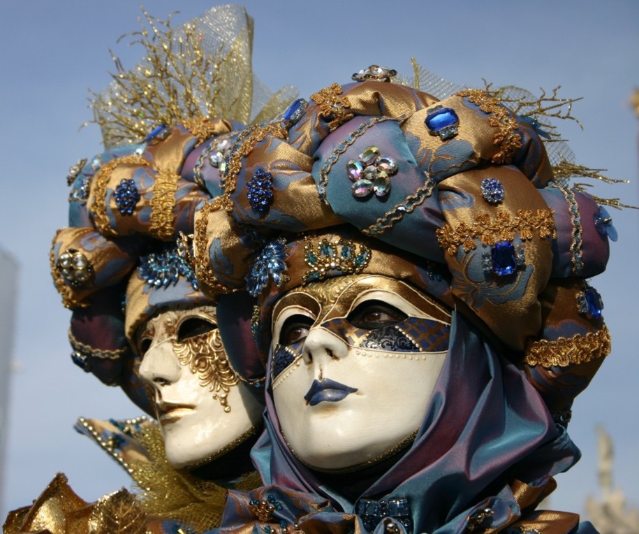 Una delle maschere più popolari del carnevale veneziano è il Bauta, caratterizzato dal tipico mantello nero chiamato Tabarro e una maschera bianca chiamata Larva; c’è poi la Moretta, versione femminile del Bauta, con velette e pizzi.