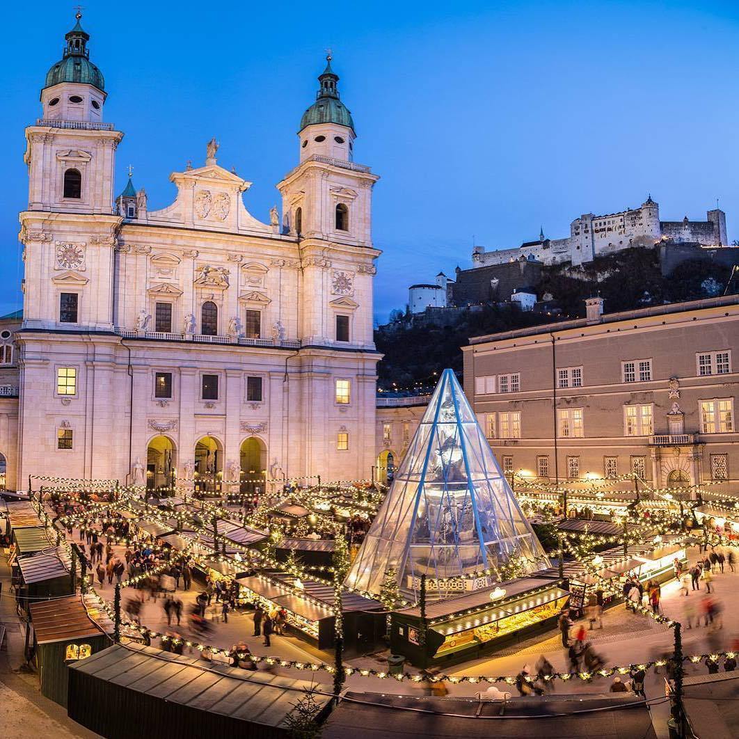 Scoprite la città di Salisburgo, festosa e molto austriaca. La sua famosa architettura barocca è ancora più bella con lo sfondo delle montagne innevate. È la città natale di Mozart, quindi aspettatevi molta musica ovunque andiate.