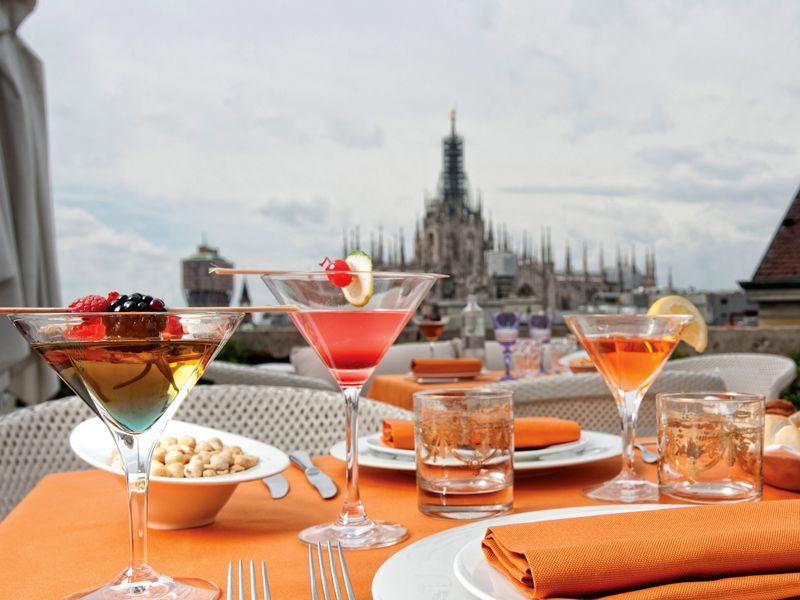 – Terrazza Aperol, Piazza del Duomo, dalle ore 18.00 presenta un ampio assortimento di cocktail e innovativi cocktail solidi (es. Cosmopolitan, Caipiroska, Aperol Spritz) oltre ai consueti in versione analcolica per chi preferisce un aperitivo light. Per il food: il classico aperitivo milanese si è unito alla tradizione del tapas-bar in versione gourmet.