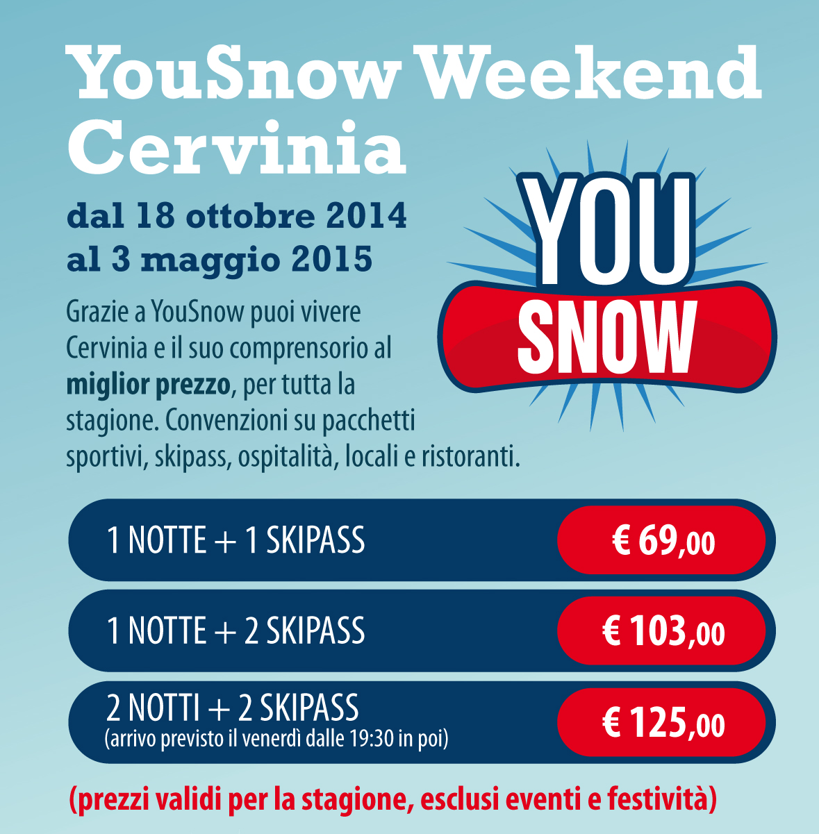 Lo skipass è valido senza limitazioni nei lift di Breuil- Cervinia, Valtournenche, Torgnon e Chamois, escluse le seggiovie di Buisson – Chamois e nell’area di Zermatt (Zermatt Bergbahnen AG e GGB Gornegrat-Monte Rosa-Bahnen).