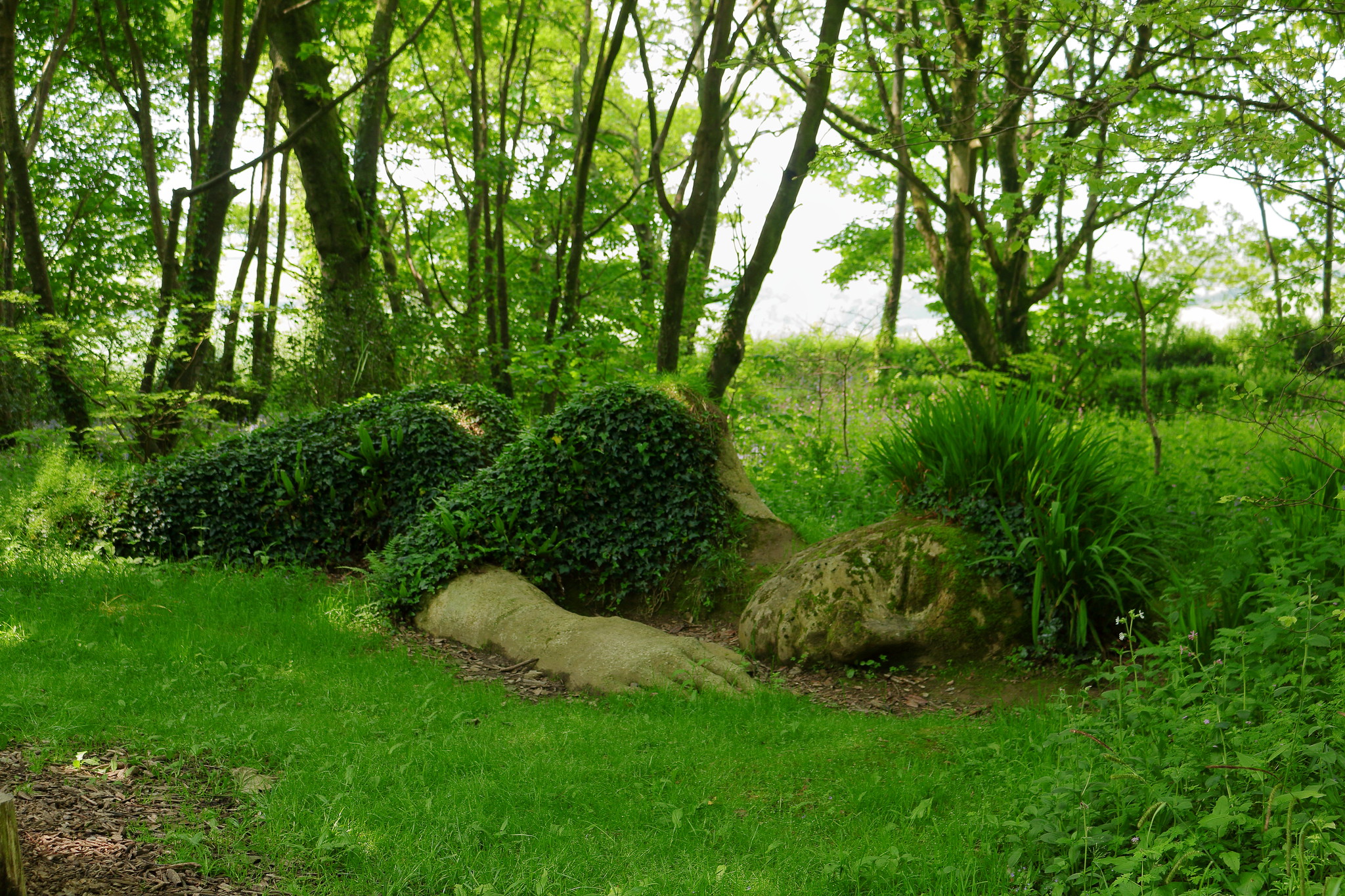 Nei Lost Gardens sono presenti, oltre alla Mud Maid, altre meravigliose sculture, create da Pete e Sue Hill. Si tratta di statue adagiate sul terreno, ispirate ad alcuni personaggi di due libri per bambini, scritti da Sandra Horn ed illustrati da Karen Popham. Tra queste sculture, oltre alla splendida Mud Maid, un’altra opera che merita di essere vista è The Giant’s Head, che rappresenta una testa gigante.