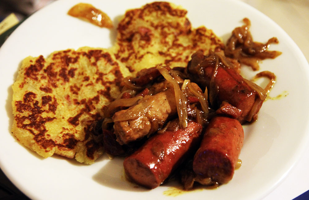 Tutto qui, di base non si aggiungono altri ingredienti: in origine il piatto era mangiato a colazione, oggi si usa come contorno con molte varianti.