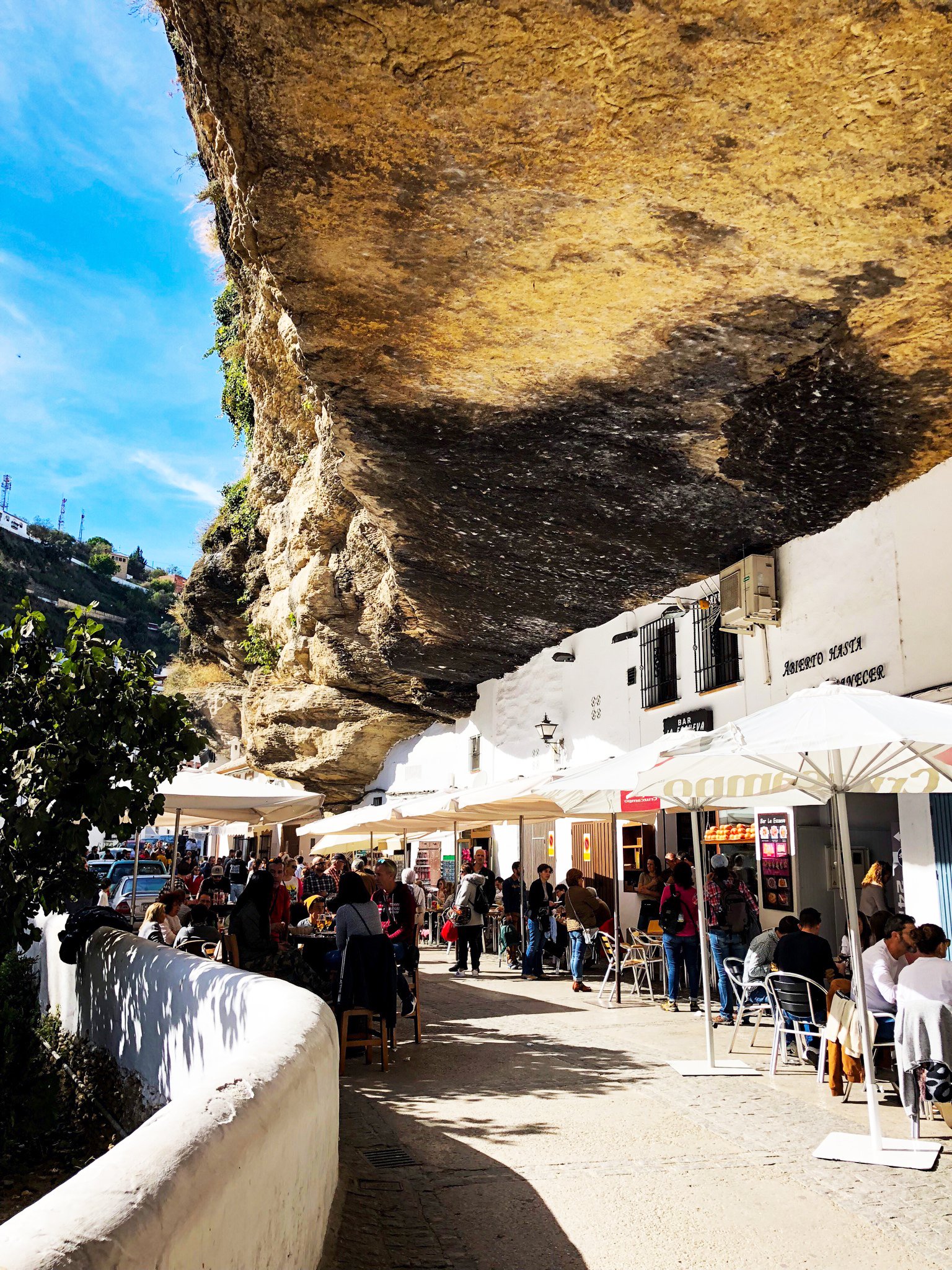 La via principale di Setenil de las Bodegas si chiama “Calle Cuevas del Sol” (Grotte del Sole), costruita sotto un’enorme lastra di roccia a strapiombo.