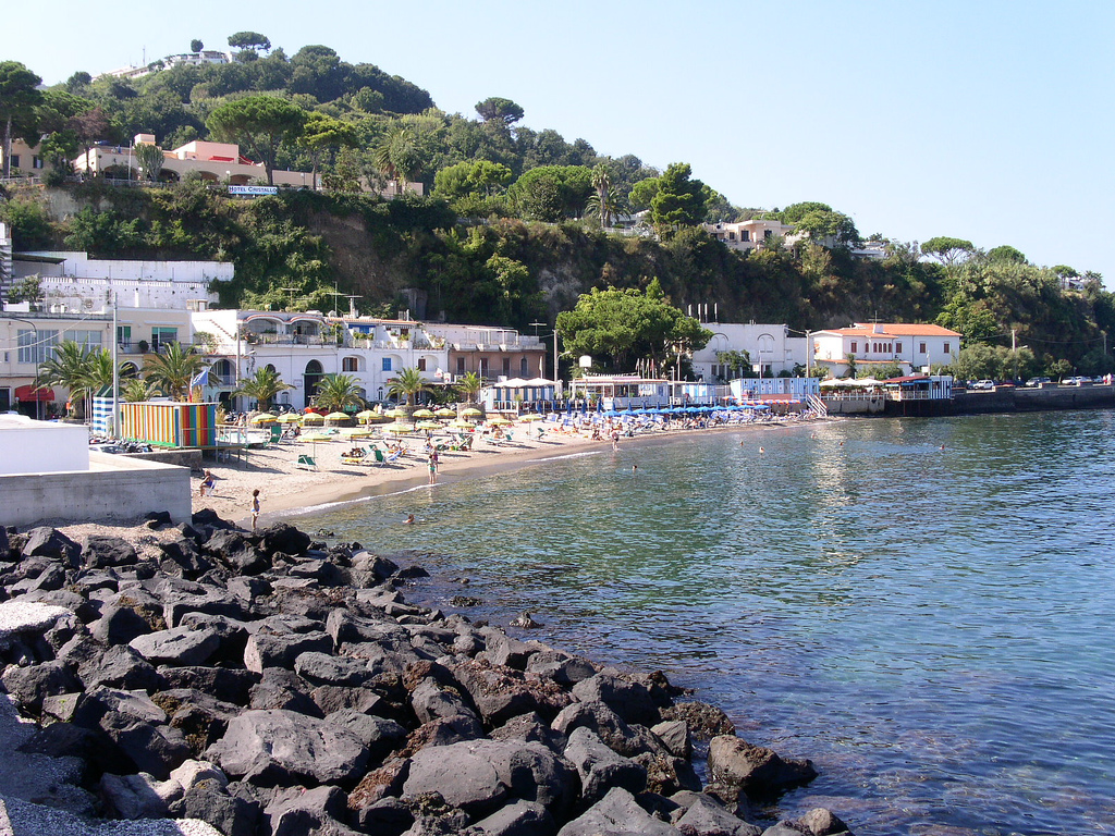 - Baia di Sorgeto – Forio (Ischia) – che si presenta con ciottoli e scogli ed è raggiungibile in auto; qui sono presenti piscine naturali di acqua calda, che consentono di fare il bagno tutto l’anno.