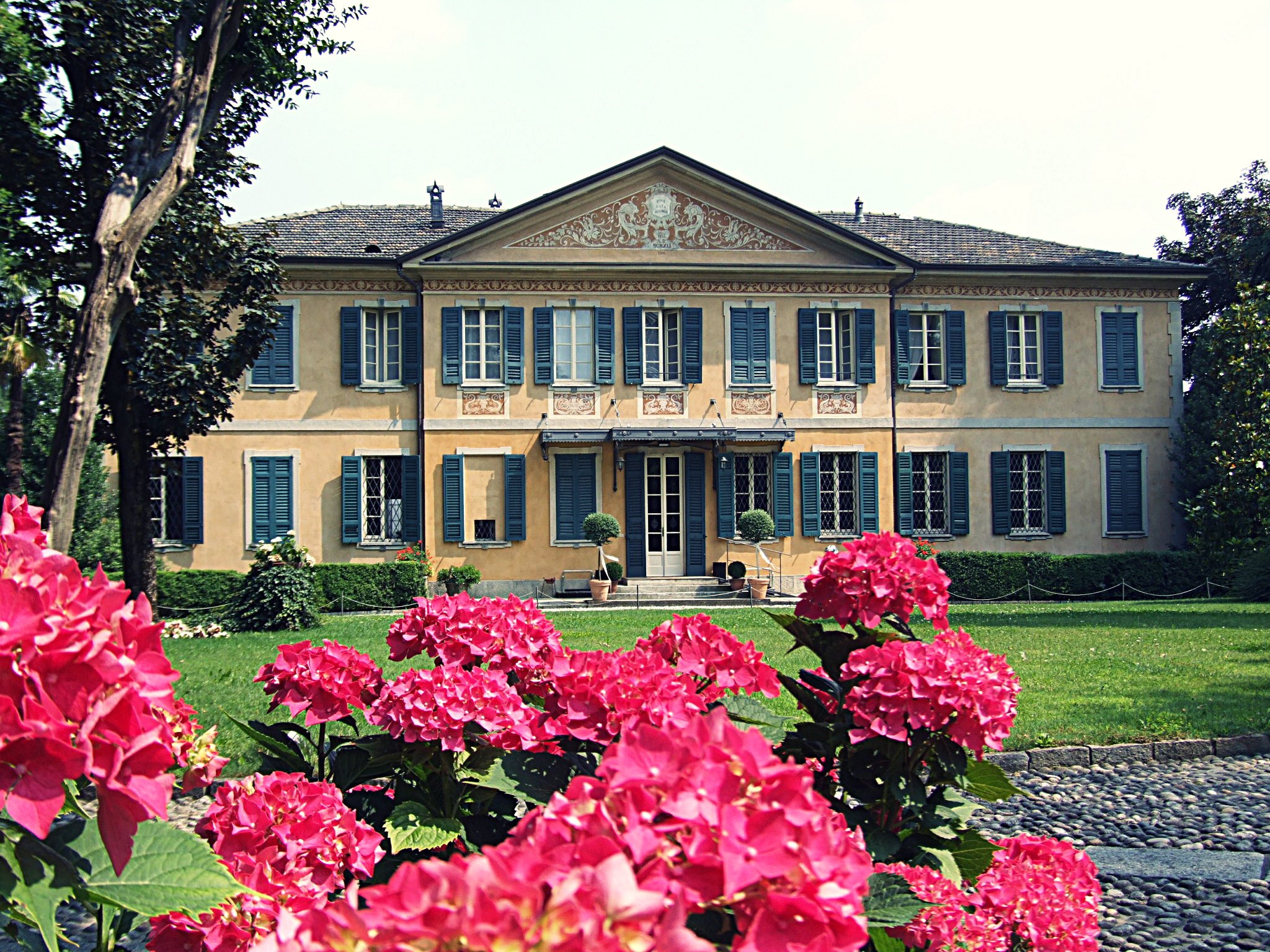 Situata sulla cima di una collina, la villa è circondata da un parco ricco di opere d’arte contemporanea e accoglie gli ospiti nelle eleganti sale del piano nobile, che hanno conservato affreschi, pavimenti e serramenti originali.